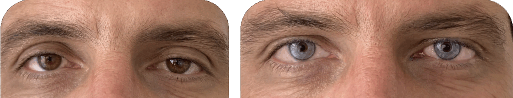 Changer la couleur de ses yeux est une transformation subtile et délicate, qui ne peut pas être reproduite fidèlement par une simple simulation numérique.